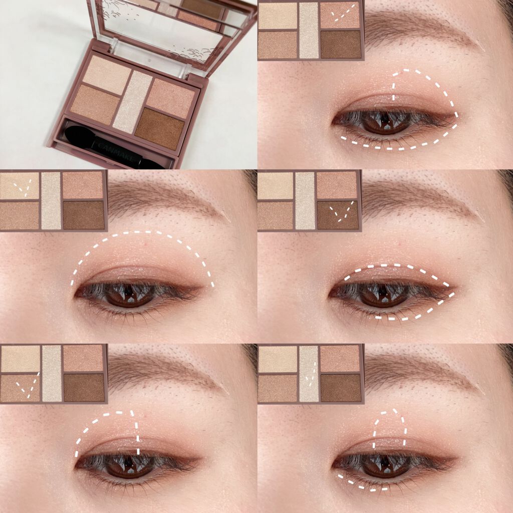 - 1枚のパレットで2つのスタイルが完成! 5色の欲ばりアイシャドウ♥ メインカラーを選んで2つのスタイルが楽しめる! A→B→D でスタイル1 A→C→D でスタイル2 繊細な粉質が、しっとりとまぶたに密着して色落ちを防ぎます。 透明感のあるキラうるトッピングジュエル(繊細ラメ)は、気分によってトッピング!