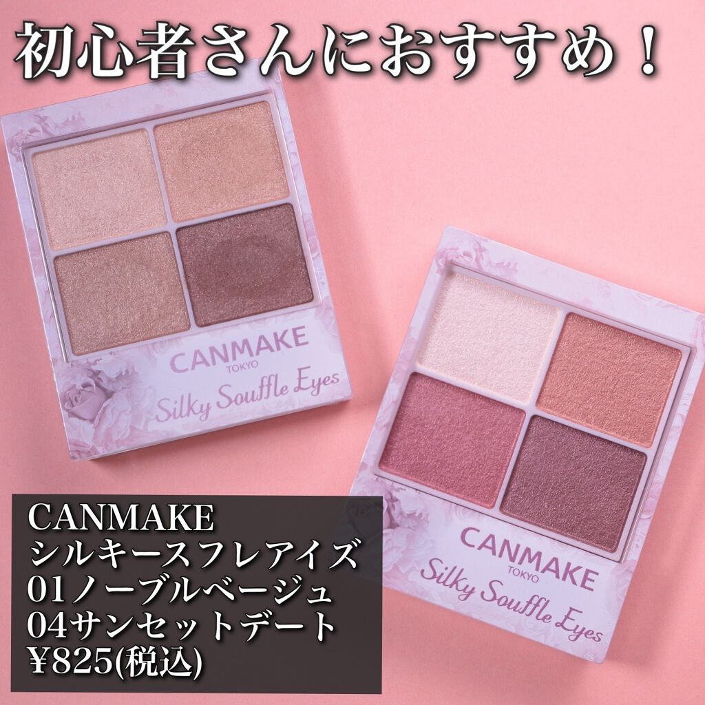 CANMAKEのアイシャドウ🌸#シルキースフレアイズ02番の方をよく使うかも😀他の色も気になる。プチプラなのによかったです😍発色は良いけど少し寄れるときがあるかも。オレンジ系も気になる。キャンメイクシルキースフレアイズ01ノーブルベージュ02...