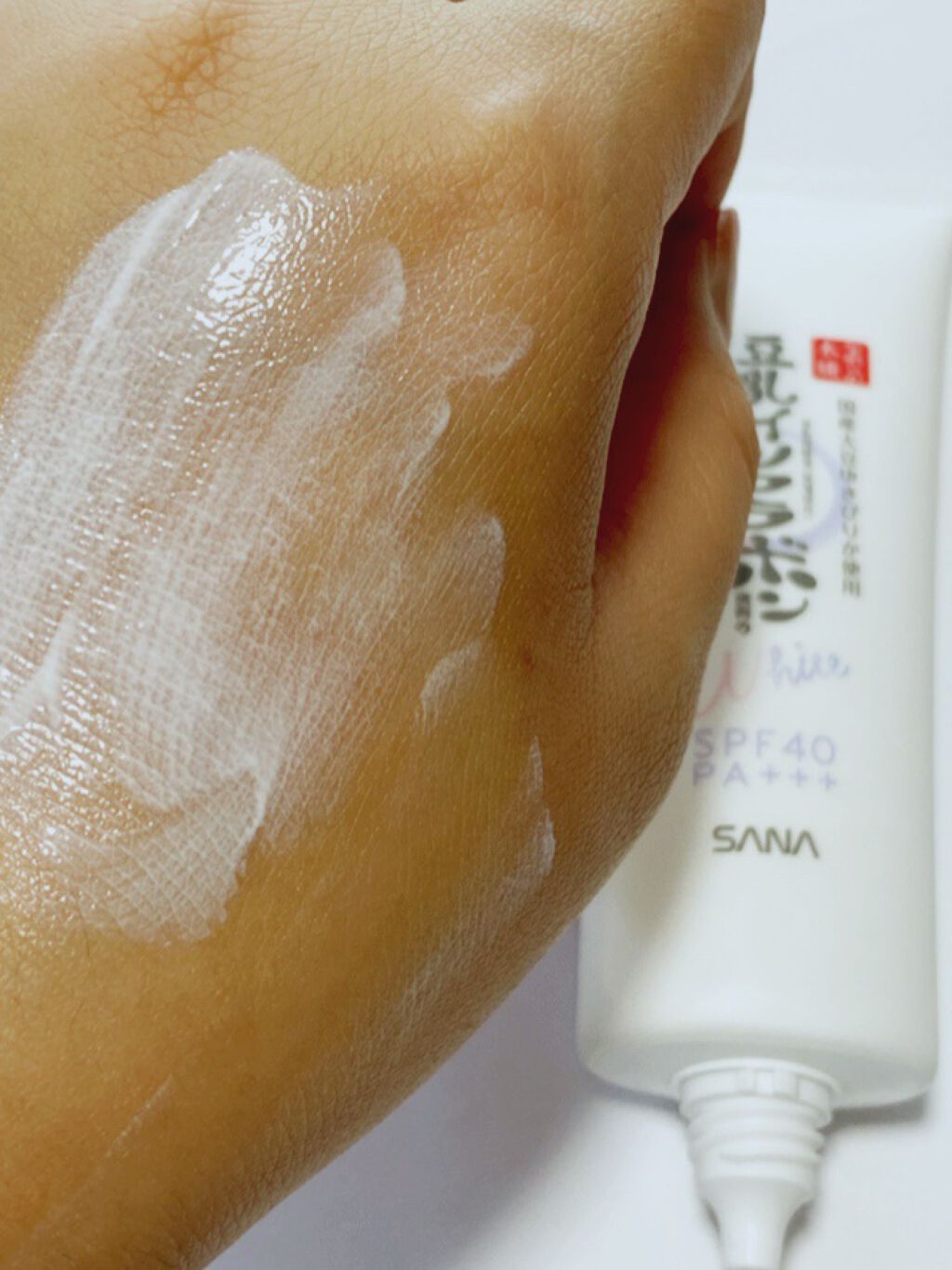 - <薬用美白スキンケアUV下地> 豆乳の美白スキンケアUV下地。肌荒れ&ニキビ予防しながら美白!メラニンの生成を抑え、シミ・そばかすを防ぎます。トーンアップ(メイク効果による)&皮脂崩れ防止。化粧水・美容液・乳液・クリーム・UVカット・化粧下地の1本6役。SPF40・PA+++。[販売名:サナ なめらか本舗 薬用美白スキンケアUV下地]