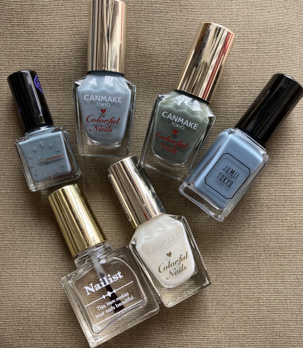 キャンメイクカラフルネイルズN28スモーキーアクアを2度塗りしてN23シャイニーシルバーをところどころに塗って薬指だけMTCマットトップコート他の指はNTCトップコートにしたんだけど、わかりにくっ。手の皺を隠すのに必死。スモーキーアクアは、シ...