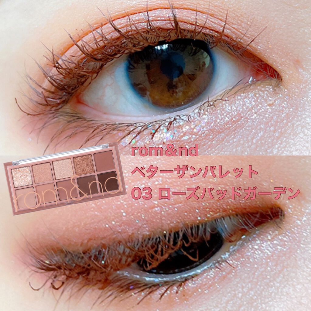 #提供❁.˚‧º‧‧º·˚.❁ ドライローズのような ピンクブラウン❁.˚‧º‧‧º·˚.❁rom&ndベターザンパレットをお試し✧*˚₊‧ੈ✩おすすめポイントੈ✩‧₊˚*⋆グリッターとマットの10色をセットにした、アイシャドウパレット...