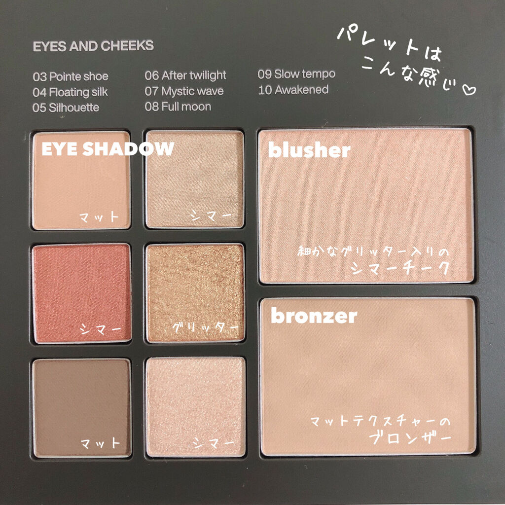 - 1冊に様々なテクスチャーのアイシャドウ 6色,、チークブラッシャー 2色、リップ 2色。 ◆First Step デイリーメイク、出勤メイク、面接メイクなど 最もベーシックなメイクルックを演出したい方におす すめ ◆Frutto Foresta フルーティーなカラーの組み合わせ。さわやかでカラフルな メイクルックを演出したい方におすすめ ◆Solar on the Rise グリッターとシマーが入ったテクスチャー、強烈な色味で 挑発的なメイクルックを演出したい方におすすめ