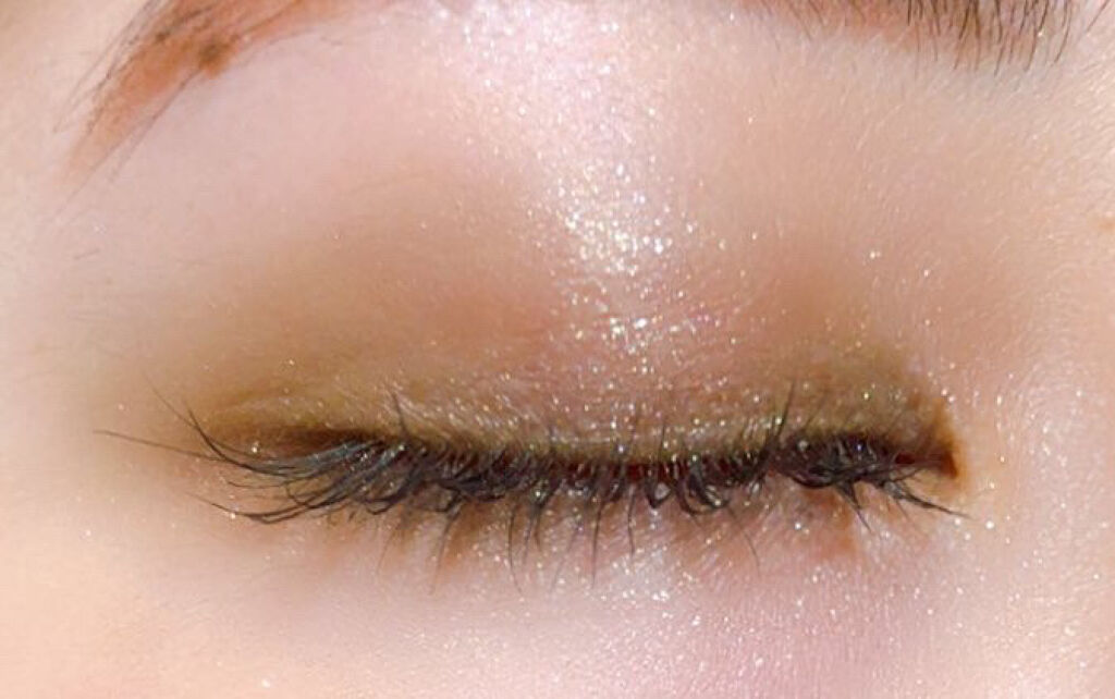 やっぱりめっちゃくすみました😇← でもツヤ感やラメ具合や粉質はさすが👏 仕上がりはほんとめちゃくちゃよし✨ アイライナーも、シュッと引いたらちゃんと細い線が描けたしいい感じ☺️