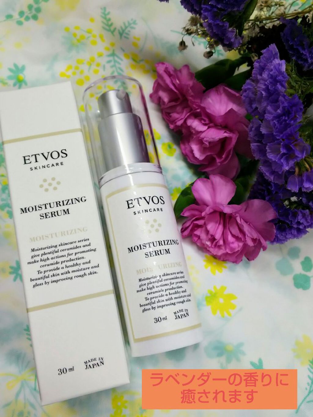 ✨エトヴォスモイスチャライジングセラム✨ヒト型セラミド配合の集中保湿美容液です💕朝晩2プッシュ、首まで伸ばしたい時はさらに1プッシュ追加して使っています☺️一瞬ですが、ラベンダーの良い香りが漂います🪻いつものお手入れの時間が、とても上質なもの...