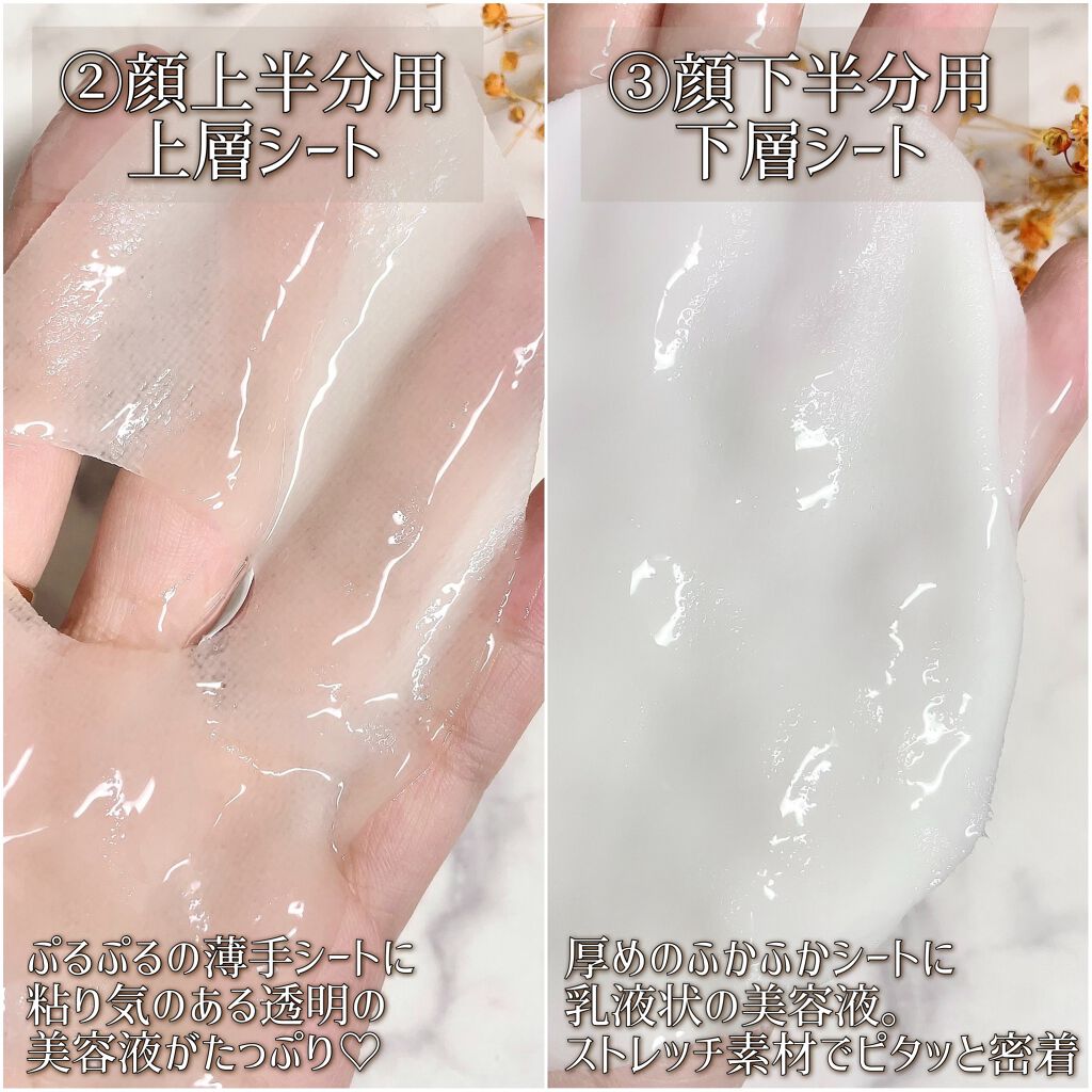 - 週に一度のご褒美ケアマスク!アンプルシート、上層シート、下層シートの3ステップ。 エーデルワイスカルス培養エキス(*1)が古い角質をケアし、ツルスベ肌に。 上下に分かれたシートがピタッと密着し、キメの整ったもっちり美肌に導きます。 *1整肌成分
