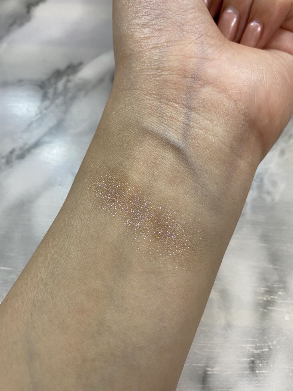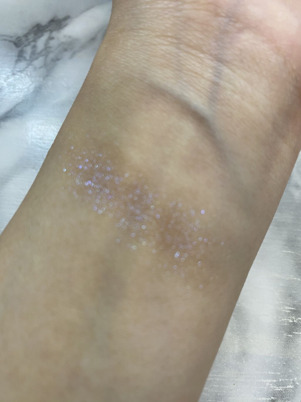 パッと見るとかなり青みの強いピンクに見えますが肌にのせるとフワッと馴染んでくれてとってもかわいいピンクチークです🩷ᩚ୨୧⑅* 透け感のあるベージュベースに青ラメがぎっしり!角度によって青ラメがキラキラと輝いてくれます✧*。 チークにアイシャドウをのせてもすごく可愛くなります!