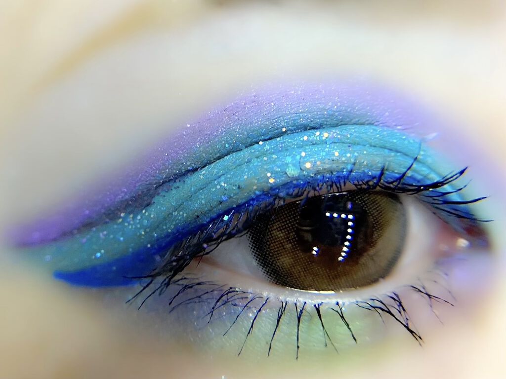 グリーンみがかなり強くなった🥺 青みの強いグリーンになってお気に入り。中心を立体的に見せる海外メイクの手法、ヘイローメイクのやり方で✌︎ ラメはセザンヌのアイシャドウパレットからとってきましたがキラッキラで可愛すぎる〜🫶 ColourPop Matte About Hue Eyeshadow Palette ADDICTION アディクション ザ アイシャドウ スパークル 001SP Stars Witness