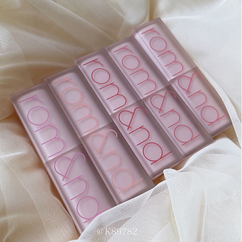 \新色4色レビュー/ロムアンドジューシーラスティングティント今回は高発色&色モチ抜群なロムアンド人気ティント4色レビューです😌💓✔️18MULEDPEACHフレッシュで可愛いコーラルカラー🦩結構ベージュ?が入っているのか、付...