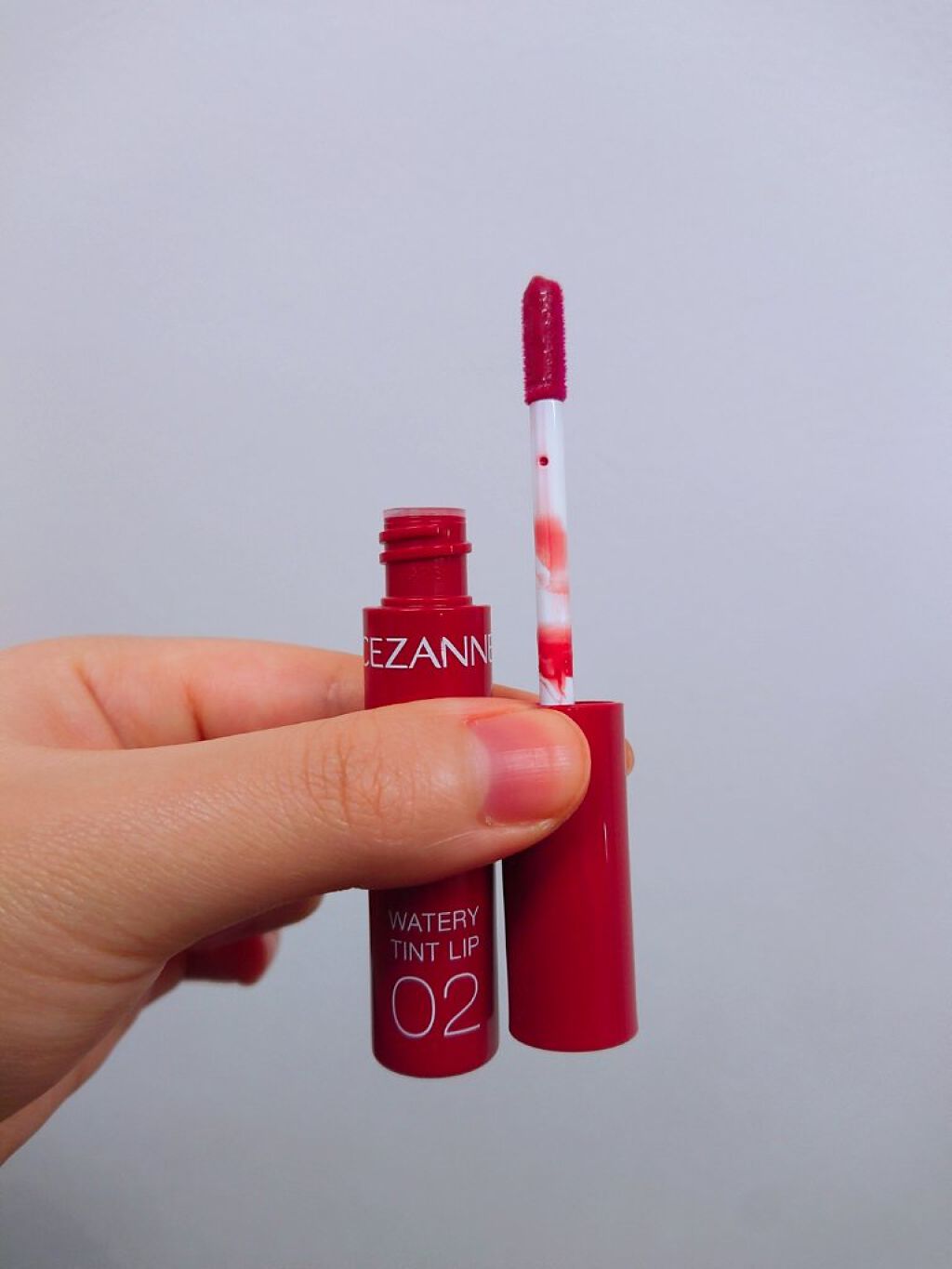 - ツヤ×色×潤いをキープする、セザンヌの新濡れツヤリップ みずみずしい濡れツヤ感ある仕上がりで、発色とツヤが長続きするティントリップです。ティントの発色を透明のベールで覆うリップコートのような処方で、ツヤ感と色をキープします。さらに、唇表面のべたつきは少なく、しっとり潤うオイルinウォーター処方を採用しています。