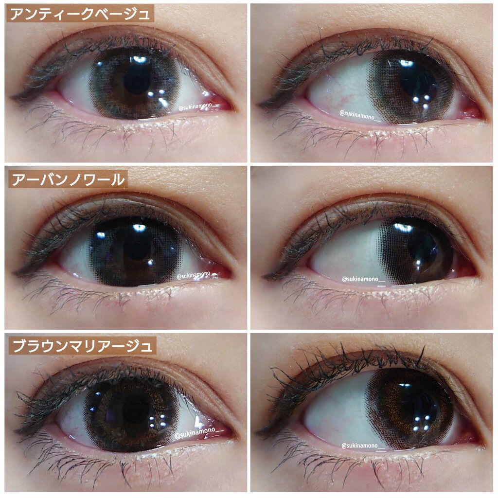 新色のヴィンテージグレージュとヴィンテージピスタチオが追加されめちゃめちゃ可愛くてナチュラルな全8色展開のカラコン。 程よい着色直径で自然だし、新色がとにかくお気に入り😭❤️❤️❤️ どれも可愛いけど、私はヴィンテージピスタチオがめちゃくちゃ好み。秋メイクにも似合いそうな、ナチュラルなピスタチオカラーでおすすめ。
