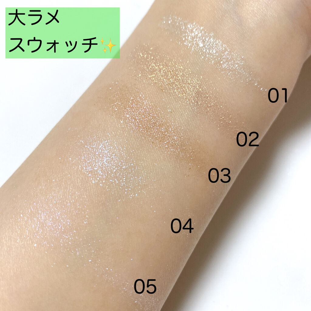 - ベース色が発色せずに、ラメだけをのせられるアイシャドウ。小粒と大粒のラメで、どんなメイクも理想の輝きに調節。「アイシャドウの上に重ねる」「アイシャドウの下に仕込む」「単品で使う」など、お好みで使えます。