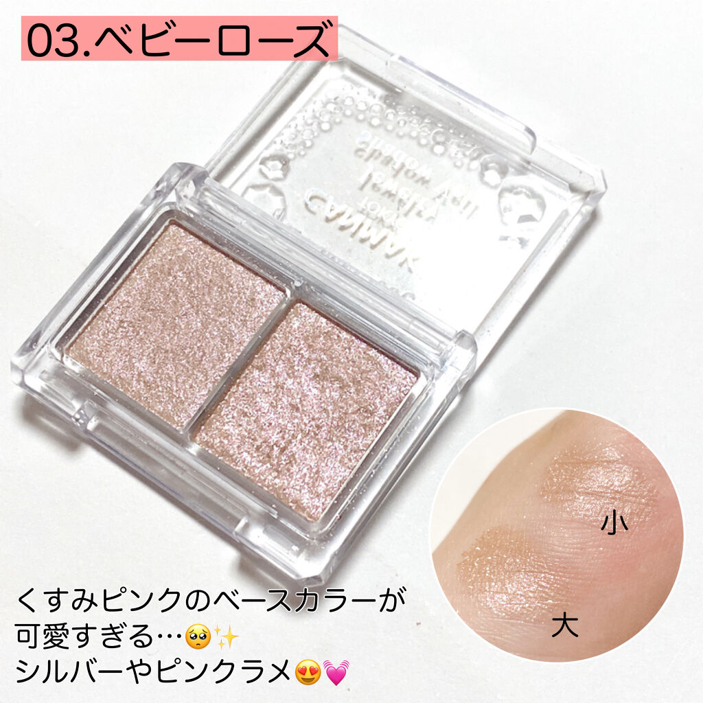 後乗せキラキラトッピング💎✨✨ キャンメイクのジュエリーシャドウベール なんとお値段660円!!! 大小2種類の大きさのラメでキラキラを足したい時の後乗せトッピングにオススメです! 今回の色味は01イノセントクリスタル シルバーラメでクールな印象🌃✨