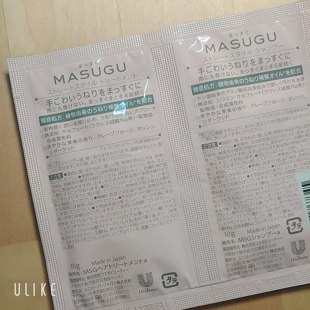 ※2024年使用品シャントリ・商品名MASUGU(まっすぐ)ストレートスタイルシャンプー/トリートメント・値段定価1624円(814円で購入)・購入場所マツキヨ・評価★☆☆☆☆好みじゃなかったシャンプーしゃばしゃば、トリートメントもゆるめ柑橘...