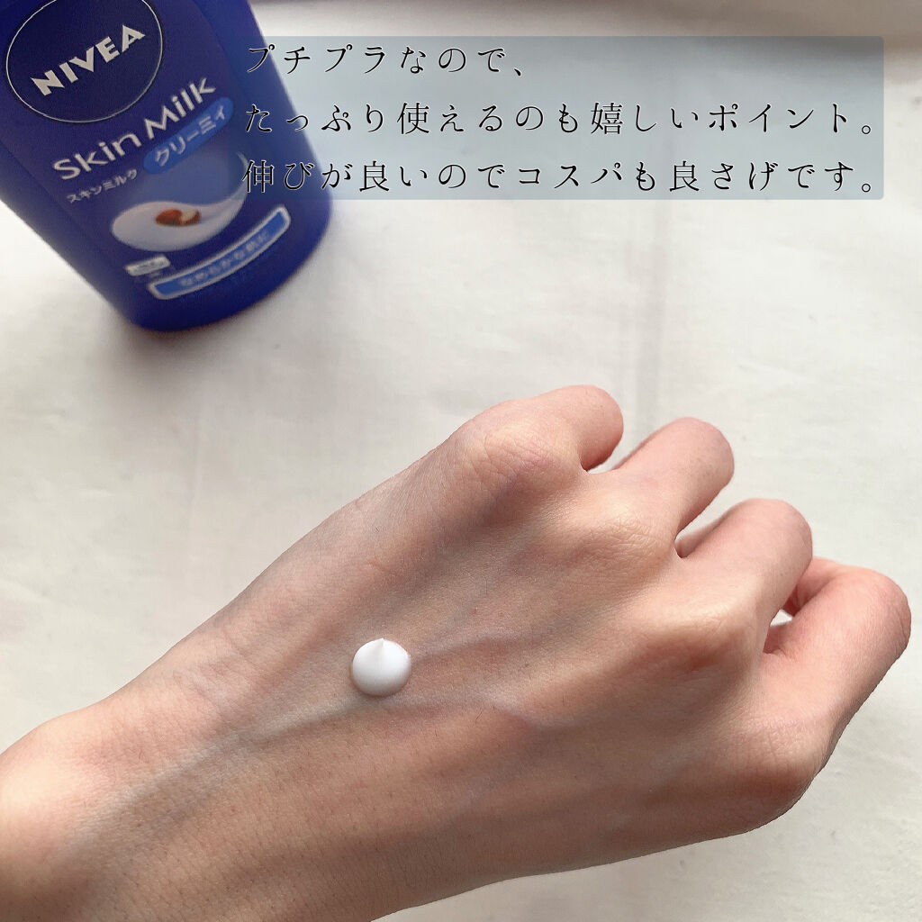 夏もボディケア必要です☀️結局ニベアがコスパ良い!でもベタつかそうって思ってる人、そんなことありません🙈ニベアスキンミルククリーミィ¥743ボディクリームって迷ったら結局ニベアを選んでしまいます🤍ニベアって安いし、保湿に対しては信頼と実績とい...