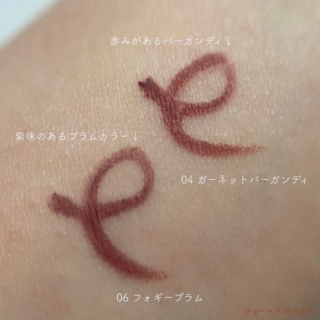 アイライナーはこのシリーズが大好きで全色所有しています♡ こちらの04 ガーネットバーガンディは赤みよりのブラウンのアイシャドウや赤みよりのバーガンディ系のお色味のアイシャドウと合わせるのが好きです♡ スルスル描きやすい 発色がいい お色味がオシャレ 汗や水に強い 落ちにくい これからもリピートします♪