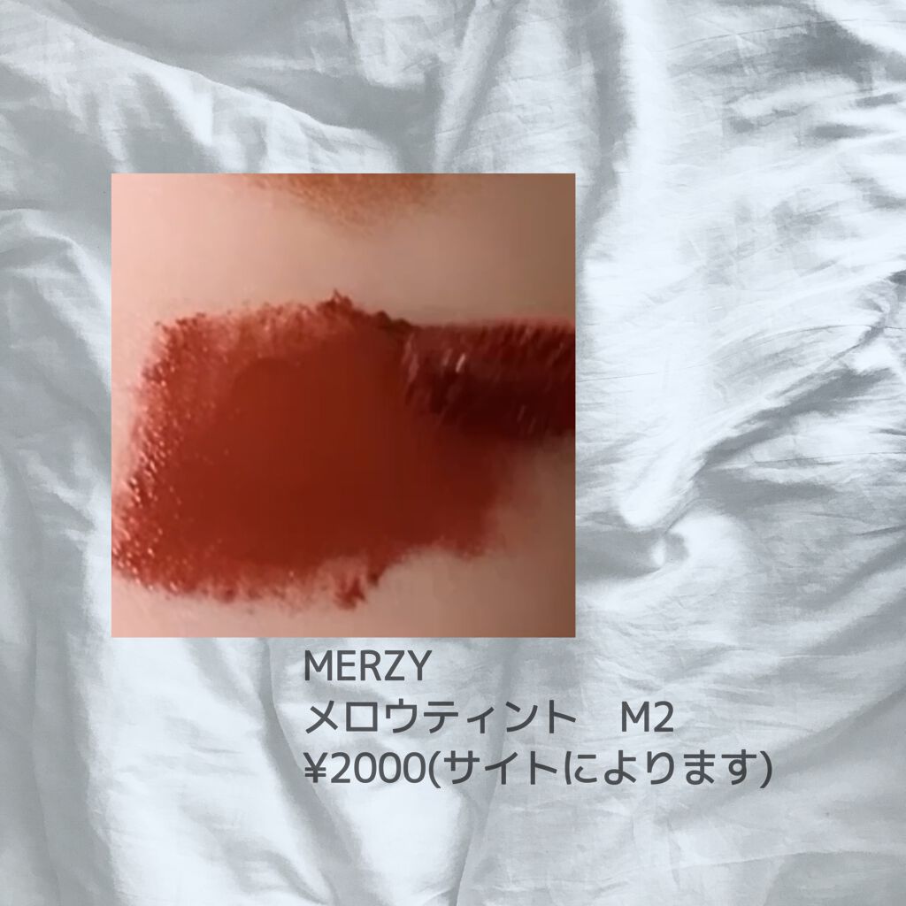 ムースのようなテクスチャーでしっかり発色が特徴なmerzy のメロウティント💗 付けたては艶っぽい仕上がりで時間が経つとセミマット仕上がりになります!!! merzyのティントリップは色みが絶妙で可愛いくて、深めカラーが好きな私にとってはたまらないカラー展開です…❤︎