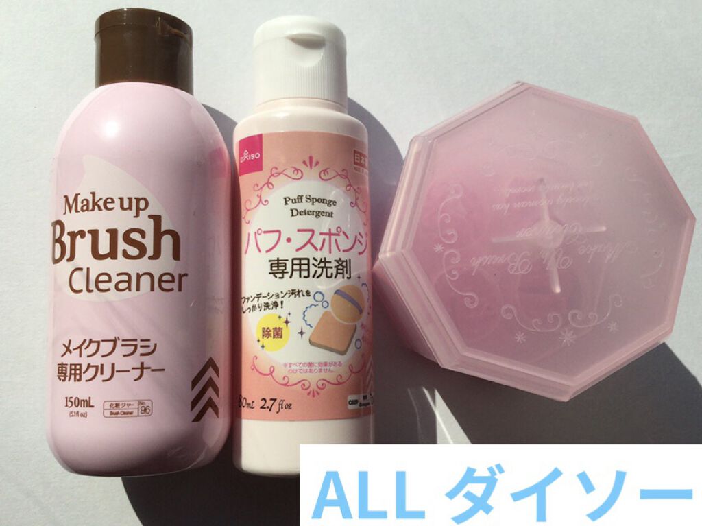 こんにちは🙋🏻♀️今回は私が愛用しているメイク用品洗浄液の商品紹介をしたいと思います!!☑︎DAISOメイクブラシ専用洗剤パフ・スポンジ専用洗剤/各¥110私がずっと愛用している専用洗剤で、ファンデをメイクスポンジで塗るのでできる限り毎回洗...