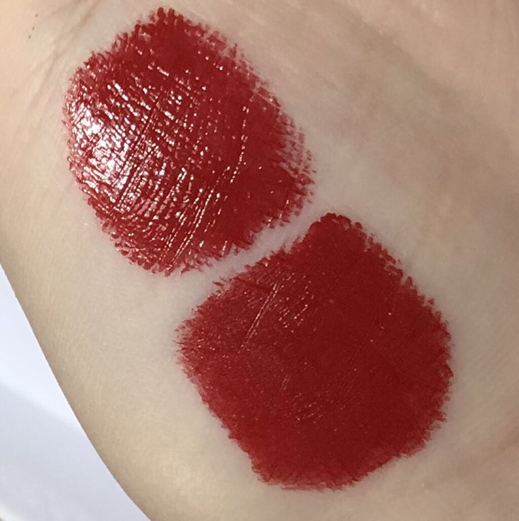 ティッシュオフ後の画像を見ていただければわかるかと思いますがすごくモチがいいです◎ ティッシュオフすると艶感がなくなってしまいますが定着してくれて落ちにくくなります🍀 甘めのお菓子(?)ジュース(?)みたいな香りがついているので香り付きのリップが苦手な方は注意です 蛍光色にならないし色持ちいいし塗りやすいし 1本買ったら人気の理由がわかった🥳