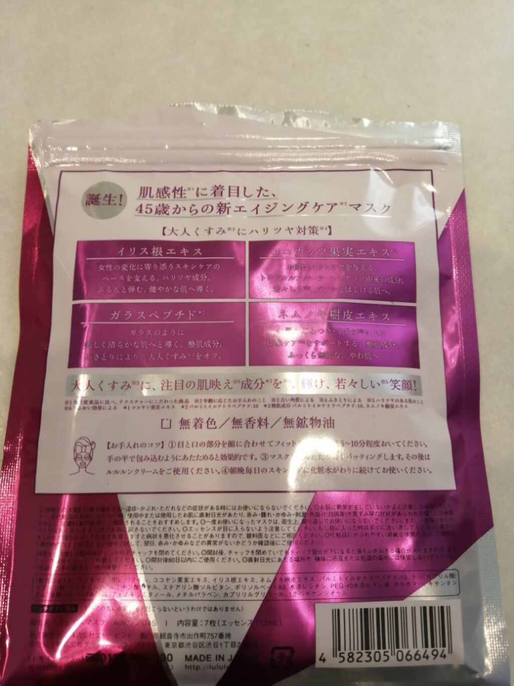 - リニューアル発売。 くすみ※1が溜まりがちな大人の肌をパッと輝くツヤ肌へ導く“ハリツヤ対策※2”マスク。くすみ※1がたまりがちな大人の肌におすすめです。 光の拡散効率に優れた虹色の海藻由来で、きらめく肌へ導くハリツヤ成分「ナナイロ海藻エキス*1」、乾燥でくすんだ肌に浸透※3し、肌にツヤを与える整肌成分「アケビプレセンタ*2 」を配合。大人くすみの原因となる古い角質をすっきりオフ※2し、パッと輝くツヤ肌へ導きます。 無着色/無香料/無鉱物油/アルコールフリー。肌のことを考えた低刺激処方。 (※1 古い角質による ※2ふきとりによる ※3 角質層まで *1 ハリツヤ成分 シストセイラタマリシホリアエキス *2 整肌成分 アケビエキス)