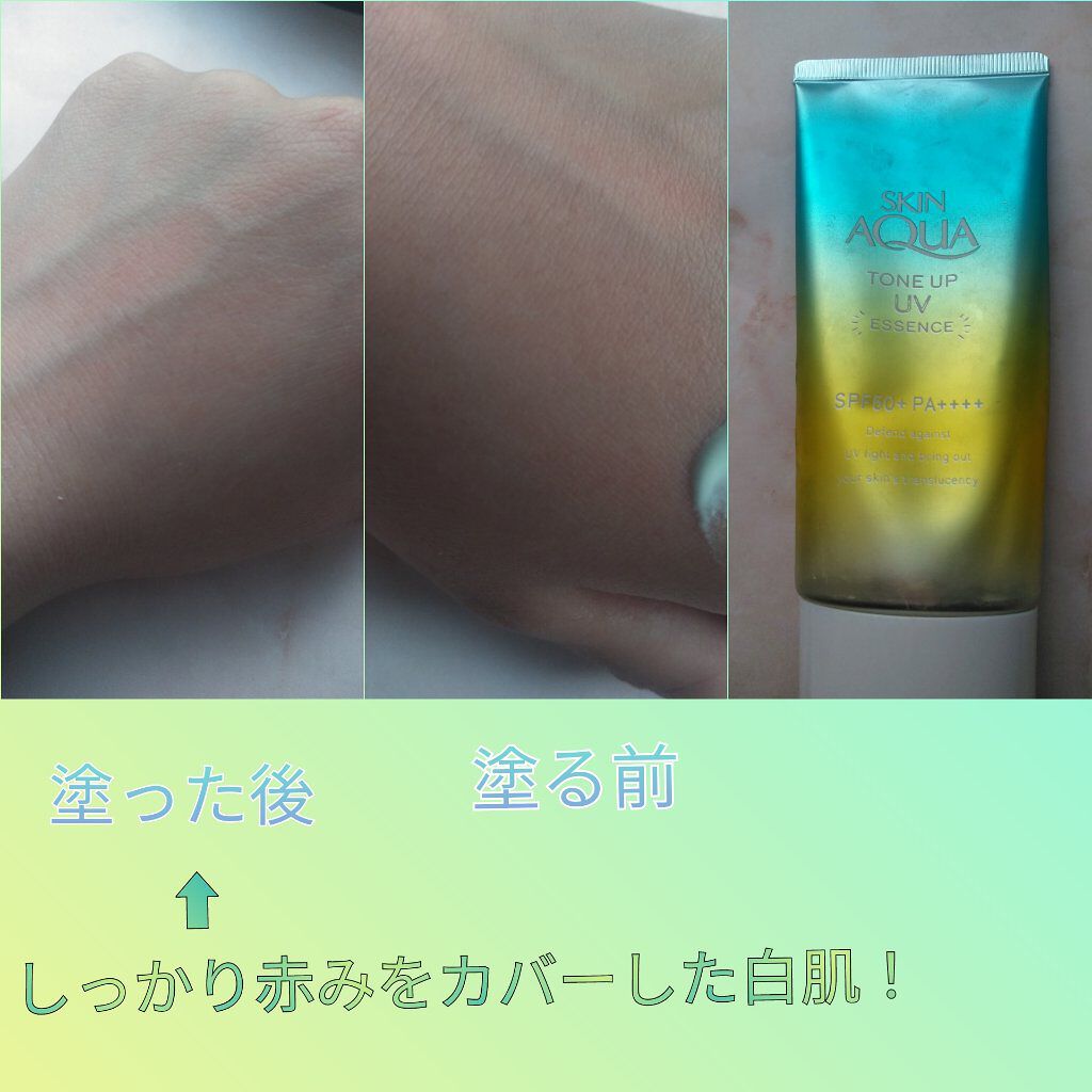 スキンアクアトーンアップUVエッセンスローズローズ初めて使いました!ラベンダーとグリーンは使ったことがあって、日焼け止めや化粧下地はラベンダーを買うことが多いけど、ローズは自然にトーンアップして顔色が良く見えるので良いなと思いました😍白くなり...