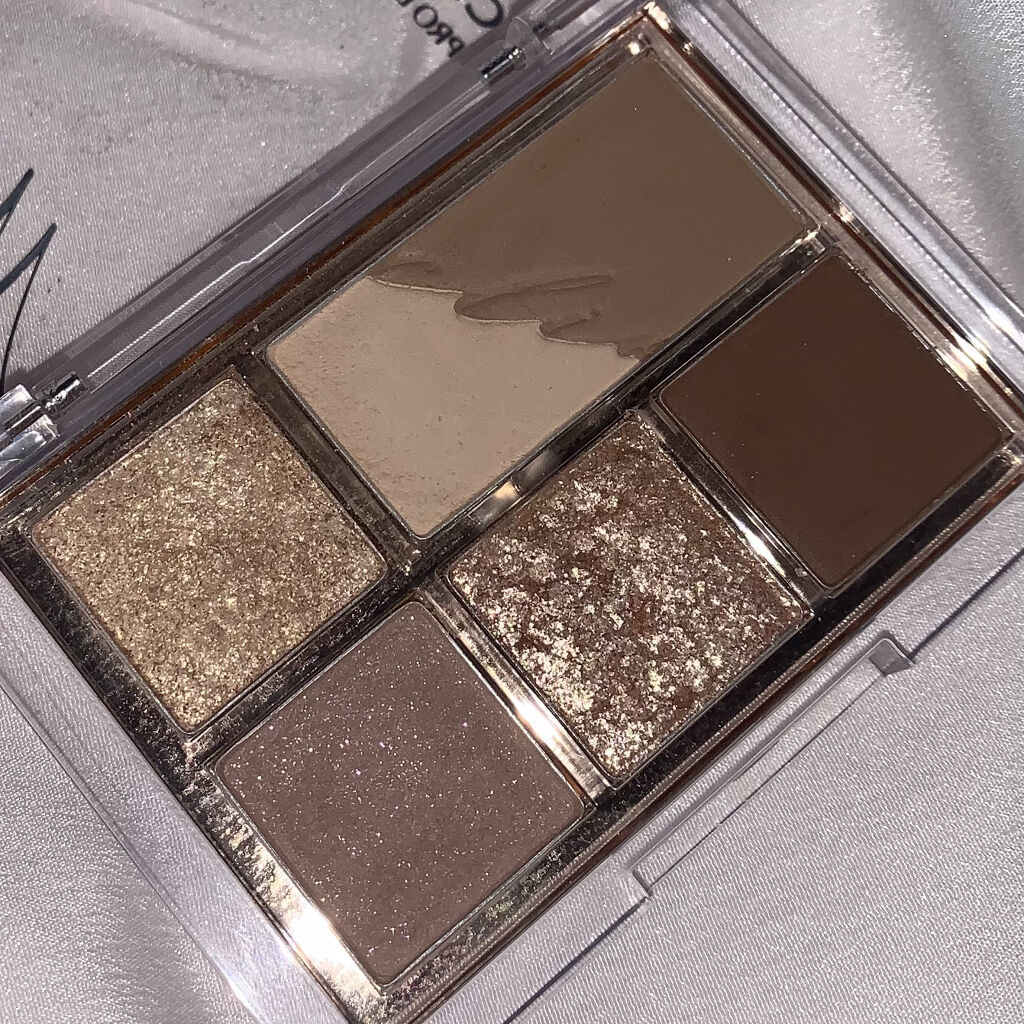 - 同系色陰影カラーと上品でクリアなグリッターの組み合わせの必要なカラーだけ詰め込んだミニアイパレット!