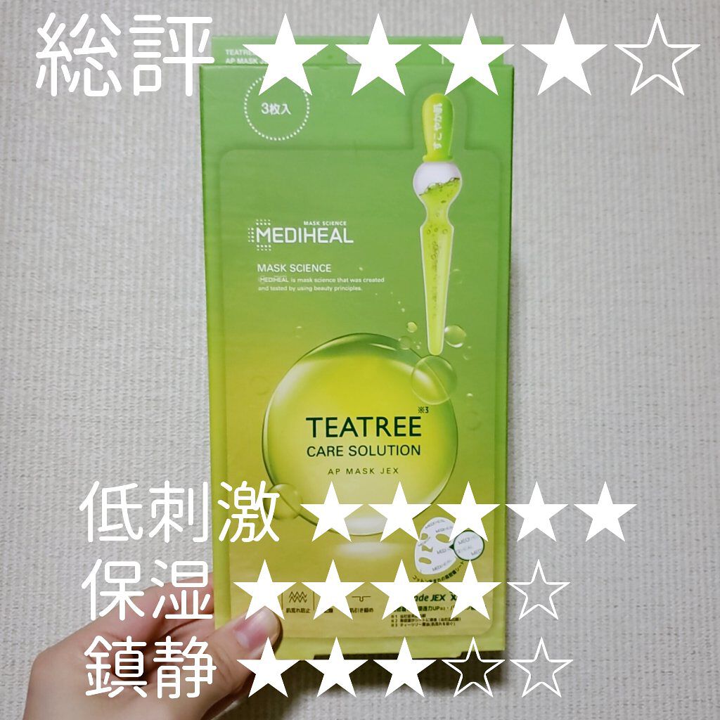 MEDIHEALティーツリーケアソルーションアンプルマスクJEXちゃんとした商品名がどれか分からなくてレビューもどれかわかんない笑3枚いり千円くらいのやつを買いました😆この有名パック、青の有名なやつ?は使ったことあるんだけど緑のこれもなかなか...
