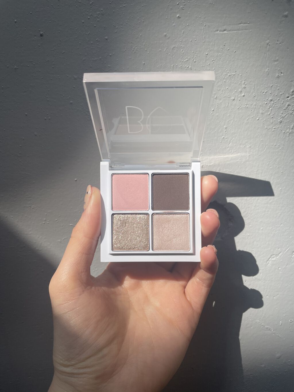 パレットだけ見るとピンクブラウンでピンクグレージュになる気はしない。でも、まぶたに重ねるとちゃんとピンクグレージュ… ラメもキレイだし、多くの方がその魅力にハマるのが分かる✨️ 色味的にも普段使いもしやすいと思います🙆
