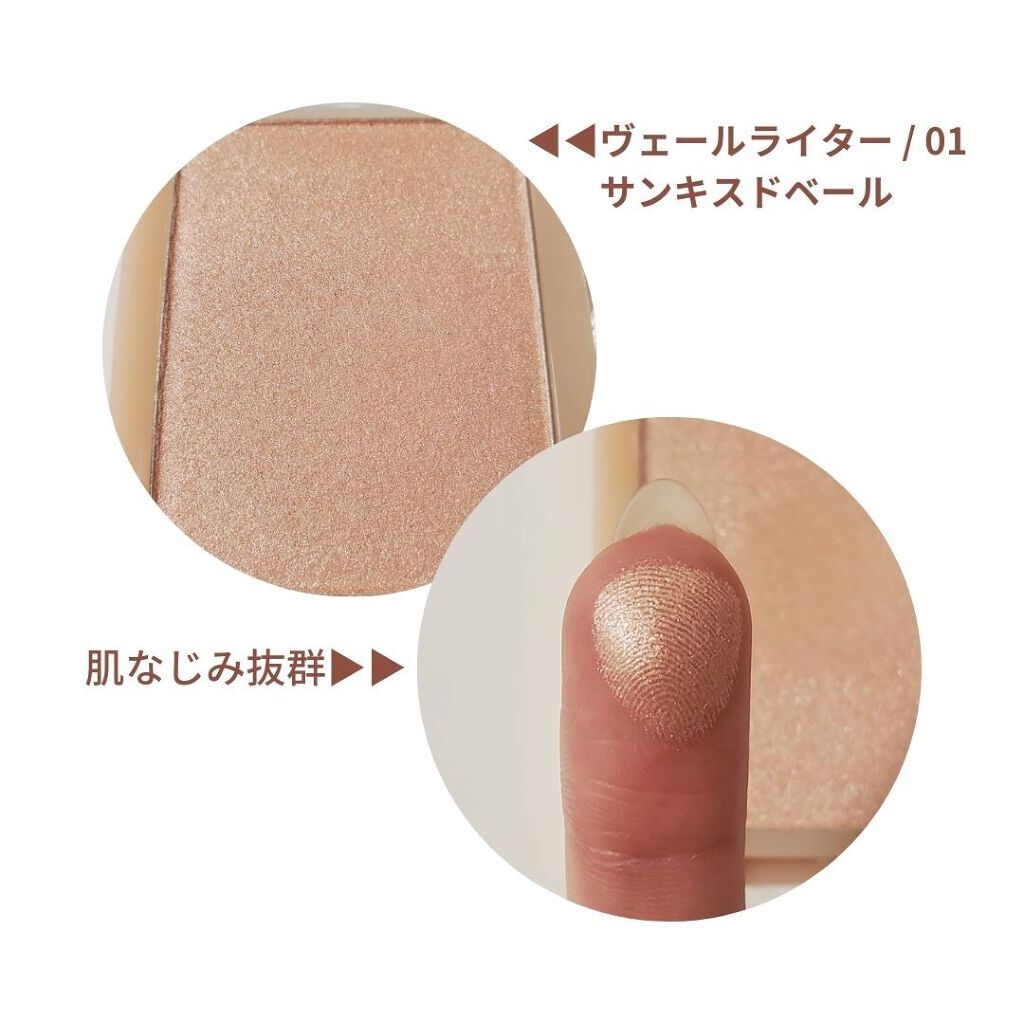 ゴールドに光るハイライトを探していたの🥲 夕方までキラキラしていてとてもお気に入り🥰🥰 評価の良いrom&ndにしてみた✨ 白に光るハイライトは白浮きしちゃって似合わないので イエベ大優勝のハイライト🍑 rom&ndのヴェールライター01