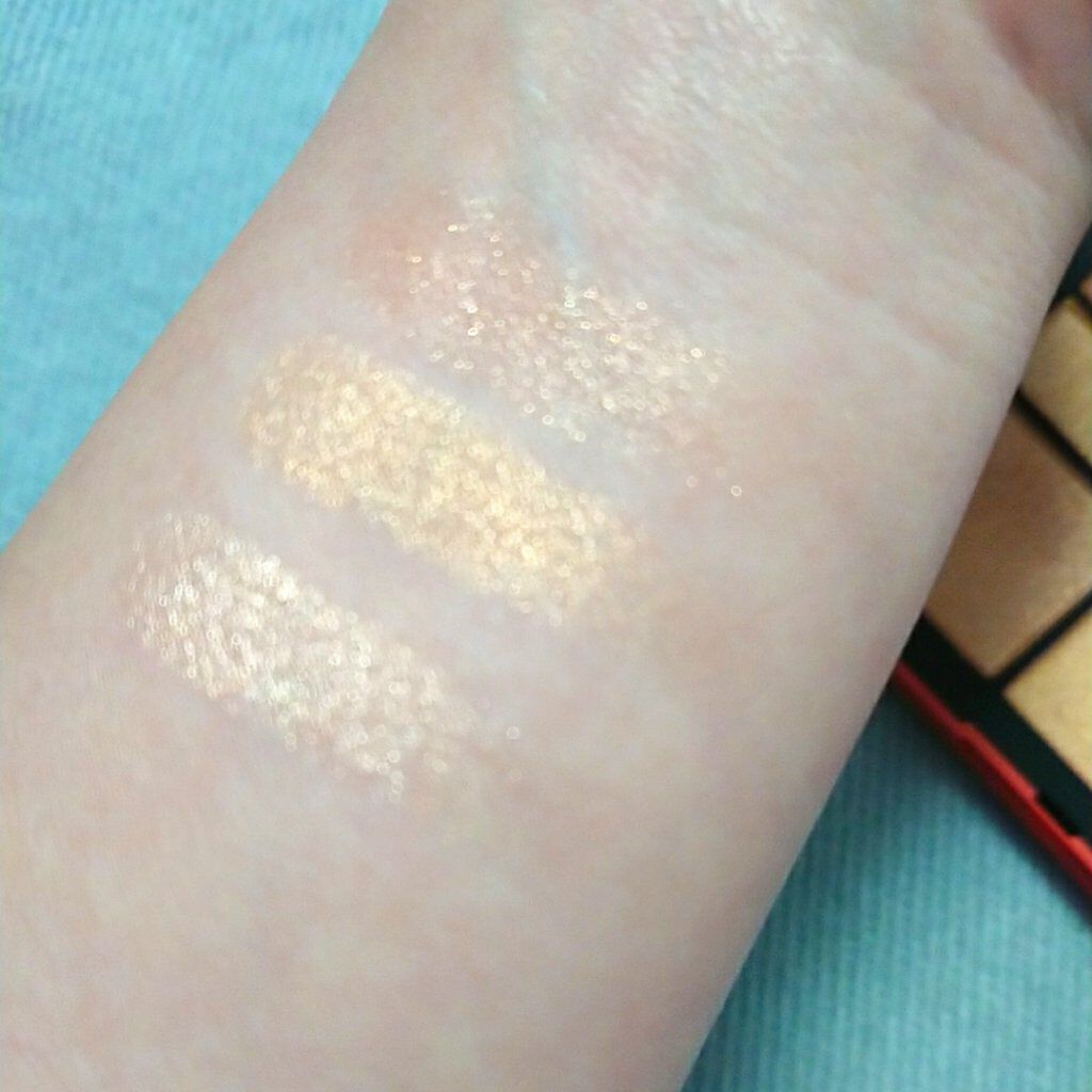 ベージュでこんな可愛くなれるんだと感動したラメ感と発色 肌に溶け込む分、どんな風に塗っても失敗しないし、自然に掘りが深い感じの目元になれる👍 ガラスパールのラメとほんのりコーラルがかったベージュで馴染みすぎず、抜け感のある雰囲気も出せて絶妙なオシャレ発色✨ ハイライトが偏光と記載があり、かなり発光します💡✨ 繊細なパールで目の下辺りとかは少し毛穴が目立つ感じもあり、マットのフェイスパウダーで調節しつつ使うとちょうど良くなりました🥰 とにかく粉がしっとりなめらかで、色の調節がしやすい❣️ 1色1色の面積もまぁまぁ大きいのでチークブラシでも取りやすく、顔全体に使えて便利🙆 日常使いしたいパレットです💕