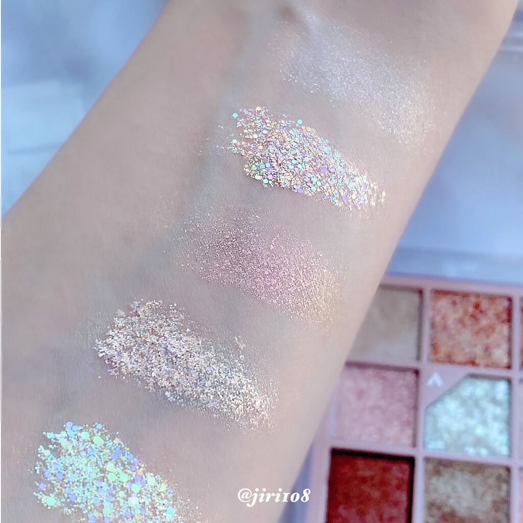 \夢が詰まってるキラキラ✨️オールグリッターパレット💞/📍unleashiaグリッターペディアアイパレットN°1オールオブグリッターグリッターが少ししっとりしているので粉飛びもせず密着力がありました!大きめグリッターから小さなラメまであり、ひ...