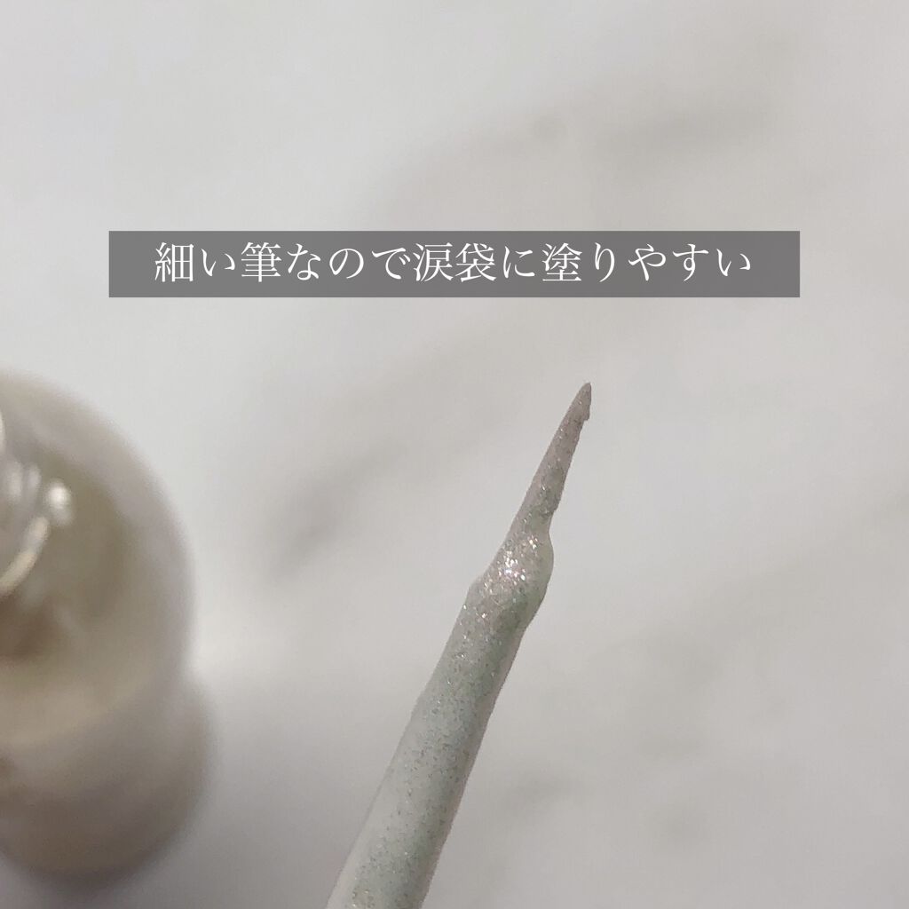ペンタイプの柔らかい芯で丸いペン先になっているため、肌に当たっても優しくスルスル色がのってくれています🖋 カラーは少しベージュ味が感じる下地に、ピンク・イエローラメがたくさん含まれていてキラキラで可愛い🤩💕 涙袋に入れるとベージュ感があるおかげで肌馴染みが良く、ラメ感が涙袋をぷっくり見せてくれてめちゃくちゃ使いやすいです✌🏻 私はもっとぷっくり見せたいので、全体的にシャインで涙袋を描いた上に、ホワイトを黒目の上だけ入れてあげると、立体感がありつつキラキララメが可愛い涙袋が作れてオススメです😍💓 とにかくナチュラルだけど涙袋をぷっくり見せてくれる最高なアイテムです👏🏻 以前のホワイトより万人受けのカラーだと思うので、涙袋アイテム探してる方にオススメです🥰