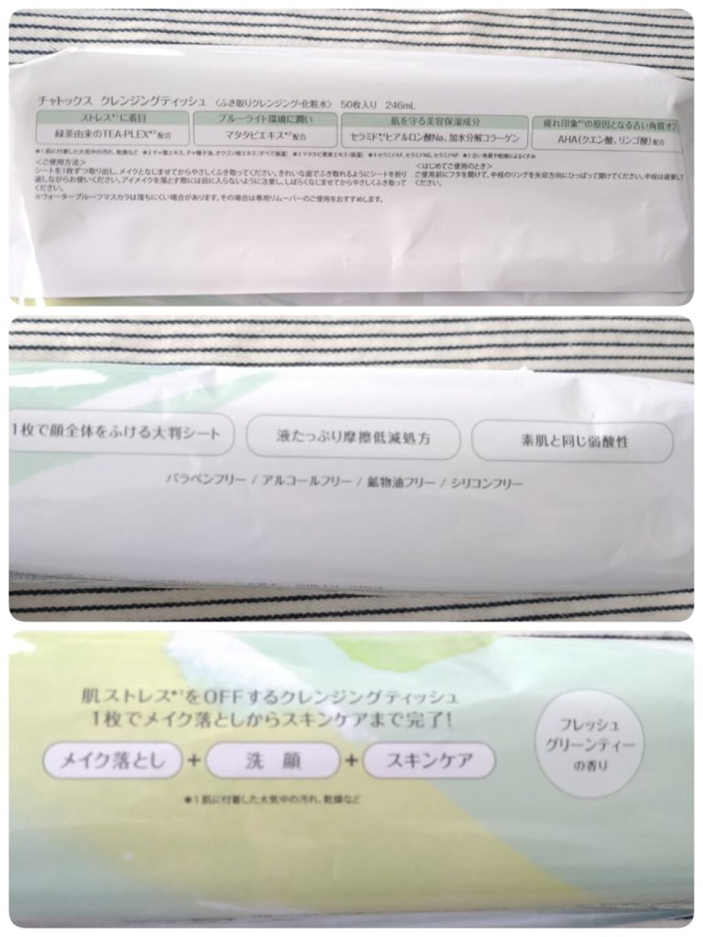 チャトックスクレンジングティッシュ大判シートのクレンジング、ティッシュです!帰宅後疲れたときにささっとクレンジングできて凄く便利です!そして、クレンジングだけでなく、・洗顔・スキンケアが1枚で完結できます。大判でシートもヒタヒタなので画像の通...