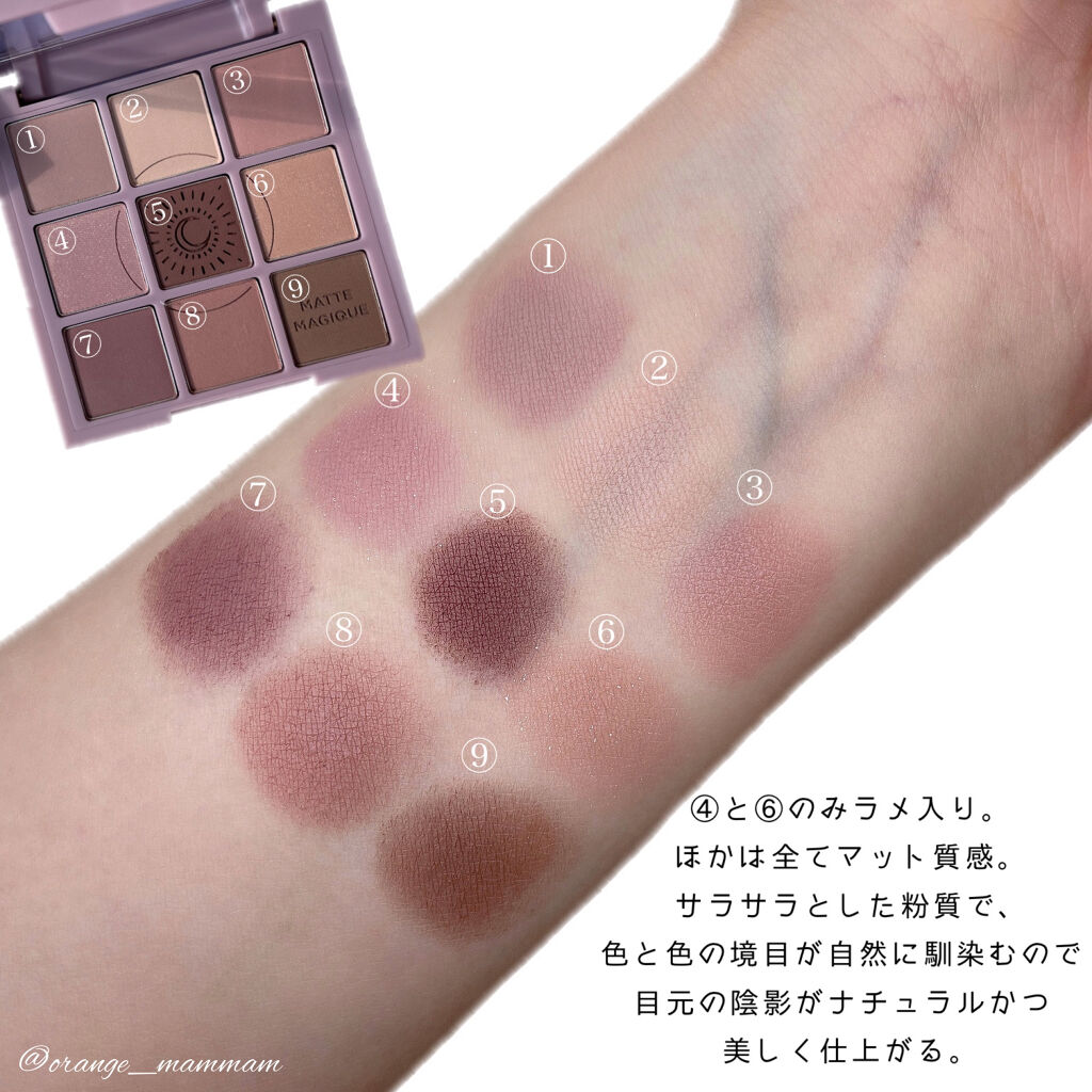| アイシャドウパレットランキング第9位 | 光にあたるとキラッと輝くのにギラつき感はなくて、程よいツヤのようにも見える絶妙さがたまらない🥰 | 詳細を見る | |