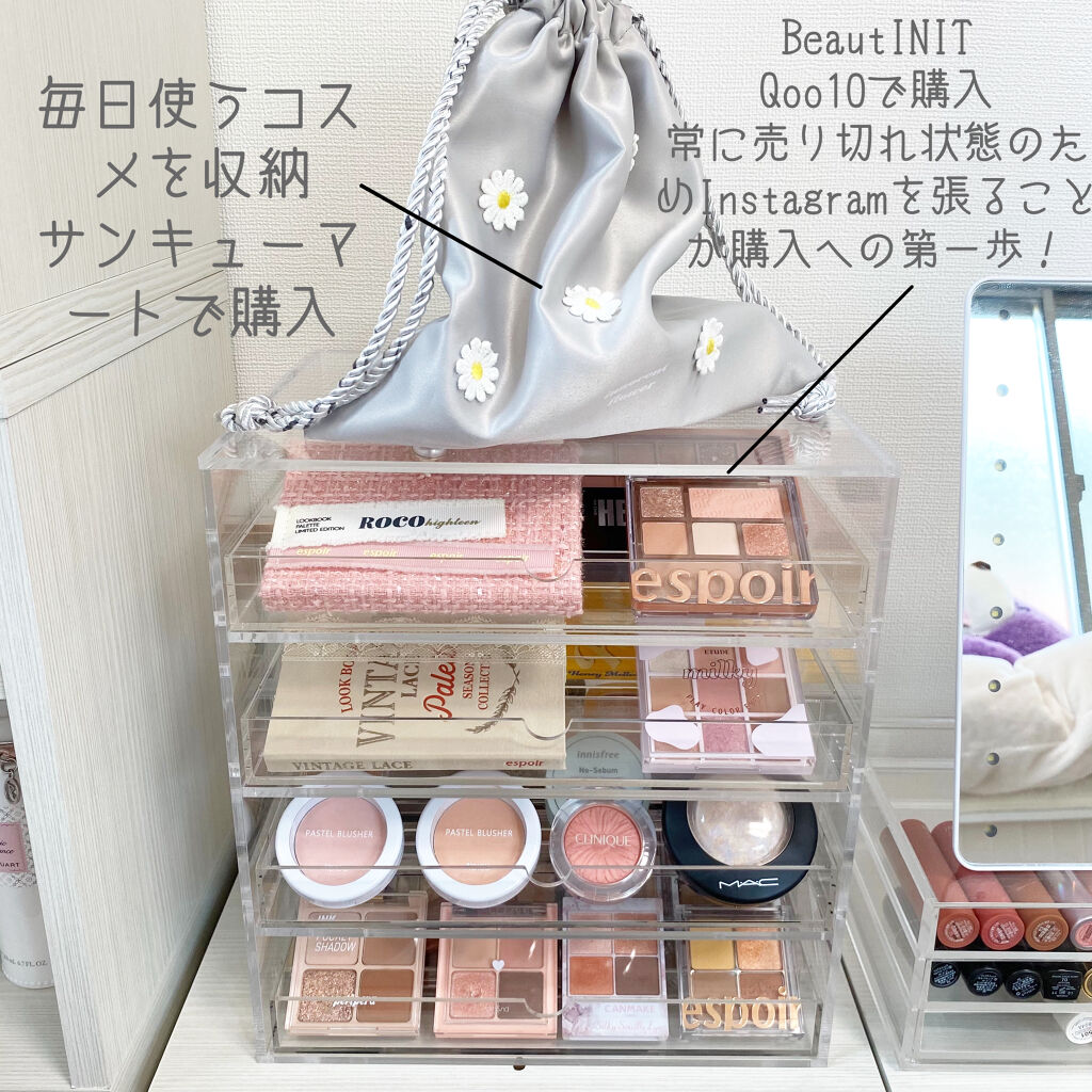 beautINITはコスメが斜めになるようになっているからどの色がどこにあるかもわかりやすい✨✨✨ このSNSとQoo10で話題のBeautINITが7ヶ月間のリニューアルを終えて再入荷して、車に使う最高級の素材で作っているそうです😃Made in Koria🇰🇷 クオリティーが良くて自分で組み立てたけどとっても頑丈!! このまま引っ越しの段ボールにいれたけど大丈夫だった😂 オールイニットボックスの枠はDIYで自分で組み立てて、アクリル専用接着剤で 接着して使用しますが、引き出しのシャドウイニット、ブラッシャーイニットは 完成品のまま配送されてきます📦 そして、2021年最後の割引!で、12月7日~12月12日までの6日間、 Qoo10ビューティー大感謝祭イベント20%割引オールイニットボックスは定価基準で最大37%割引された価格で購入できます😍