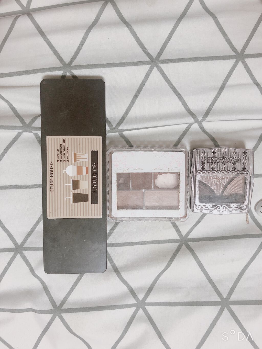 地雷クソメスのくそ盛れメイク{目だけ}クリオプロアイパレットの01番上の段の右上をアイホール全体に横広めに塗る🥲そしたら下の段の右から2番目を二重幅と目の下の3角の所に塗る😸次にCEZANNEの各二重ライナーで涙袋を広めに下に下がるように書く...