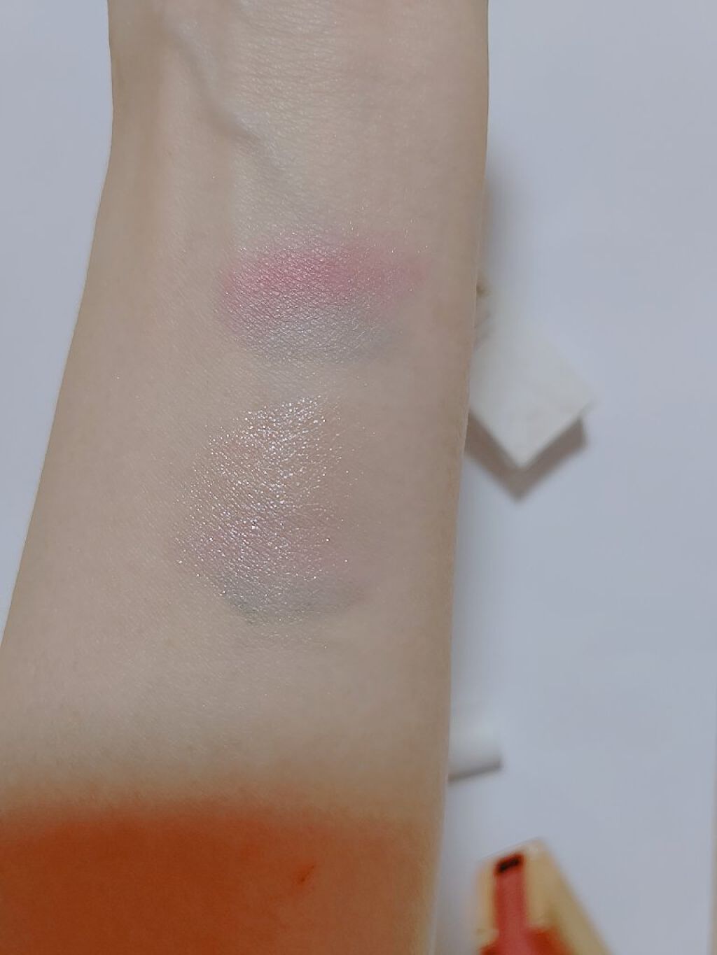 SUQQUUKシグニチャーカラーアイズ102彩雫パッと見は、あれ?思ったより地味かな?と言う感じだったのですが、腕に乗せてみると…、どうしましょう😂可愛い❗可愛い‼️可愛い‼️❗️まさにこの言葉しか出てきません‼️まず左上のパールがかったピン...