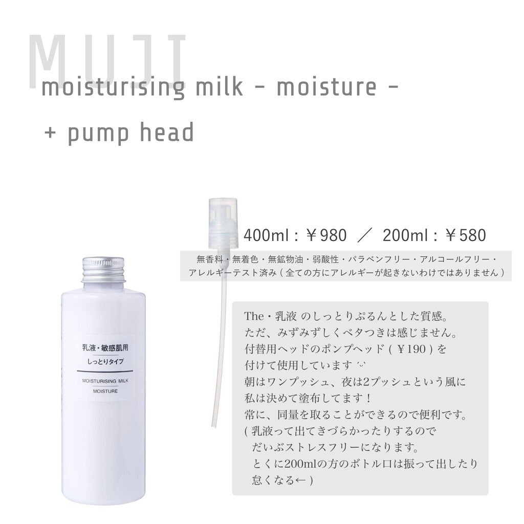 50mlが約3ヶ月使えたので、200mlなら、もっと使えるかな?と思ってます!ヾ(・ω・*)ノ 敏感肌用乳液がリニューアルしてから使うのは初めてだったのですが、なんか乳液に空気が含まれていて、フワッとした泡っぽく感じました…! 「無駄な物はいらぬ!適度な保湿力が欲しいのだ!!」という方に向いている商品だなと感じました!