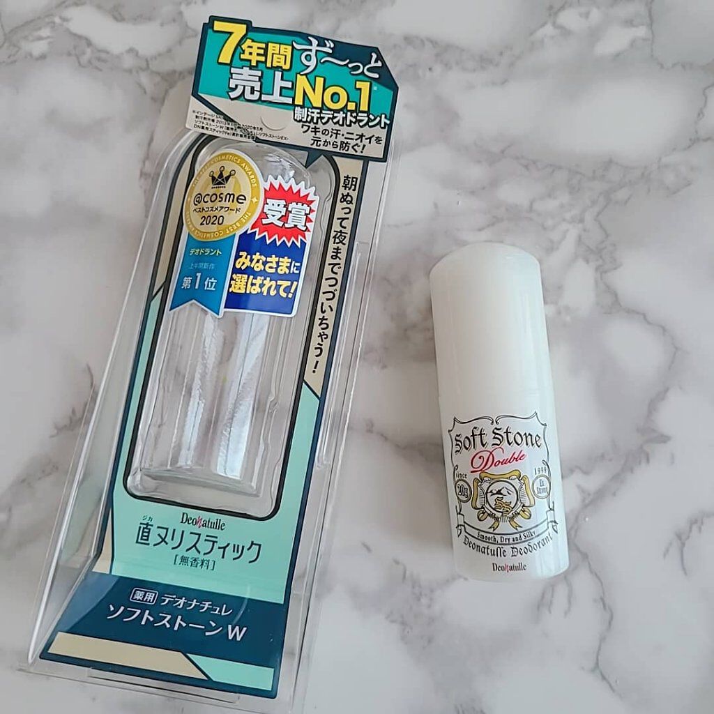 - \11年間ず~っと売上No.1*制汗デオドラント/ ワキの汗・ニオイを元から防ぐ 直ヌリスティック・無香料・アルコールフリー 天然アルム石に着目。有効成分「焼ミョウバン」を配合。 ◆◆ユーザーから選ばれる理由◆◆ ◆『天然アルム石のチカラ』に着目して、汗・ニオイを元から防ぐ! 「デオナチュレ ソフトストーンW」は、天然アルム石に着目。有効成分「焼ミョウバン」を配合し、汗・ニオイを元から防ぎます。 ◆ニオイの発生源・ワキに“直ヌリ”でしっかり密着し、朝ぬって夜まで続いちゃう! 忙しい朝でもサッとつけることができるスティックタイプで、夜まで長時間持続。 ◆すぐにサラサラ!ベタつき・白残りしにくい すぐに洋服を着ることができるので、時間のない朝にも嬉しい! ==注意== ●顔・粘膜を避け、除脱毛直後や肌に異常があるときは使用しないでください。●肌に異常が生じていないかよく注意してご使用ください。また、お肌に合わないとき、使用中に赤み、はれ、かゆみ、刺激、色抜け(白班等)や黒ずみ等の異常があらわれたときは、使用を中止し、皮フ科専門医などにご相談ください。●使用後はキャップをしっかり閉め、直射日光や高温多湿を避けて保管してください。●乳幼児の手の届かないところに置いてください。●スティックを出し過ぎて折れないようご注意ください。●衣類などにつかないようご注意ください。●本製品は残り少なくなりますと、構造上容器の底に中身が若干残ります。そのため、実際には容器に表記されております容量以上を充填しております。 販売名:DN薬用スティックFe *インテージSRI+制汗剤市場 2013年5月~2024年4月 ソフトストーンW(販売名:デオナチュレソフトストーンEX(リニューアル前処方)・DN薬用スティックFe)累計販売金額