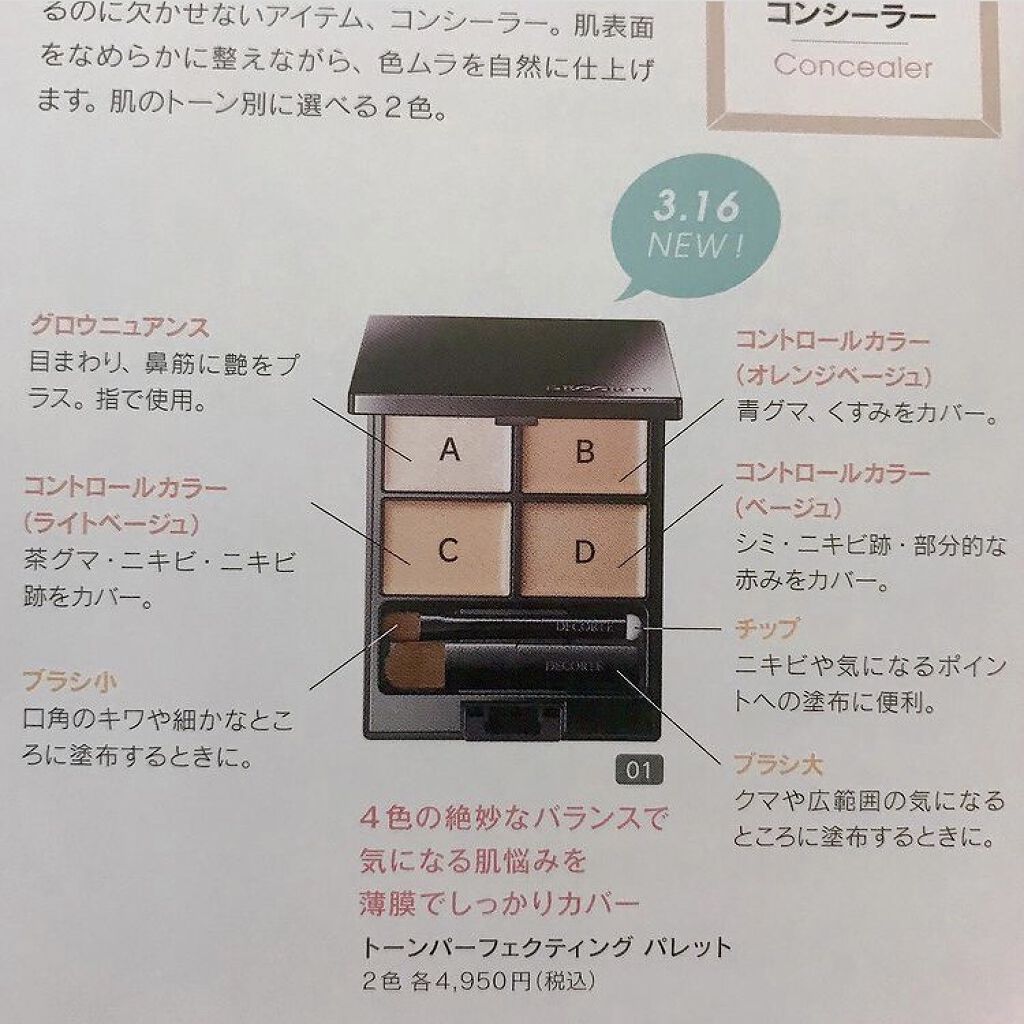 コスメデコルテトーンパーフェクティングパレット01リピートアイテム♡クマ、シミ、ニキビあと、肌の悩みをカバーしながら、左上のカラーで目まわりや鼻筋にツヤをプラスできます♡厚塗り感がなくてナチュラルな仕上がりだと思います!テクスチャーは、しっと...