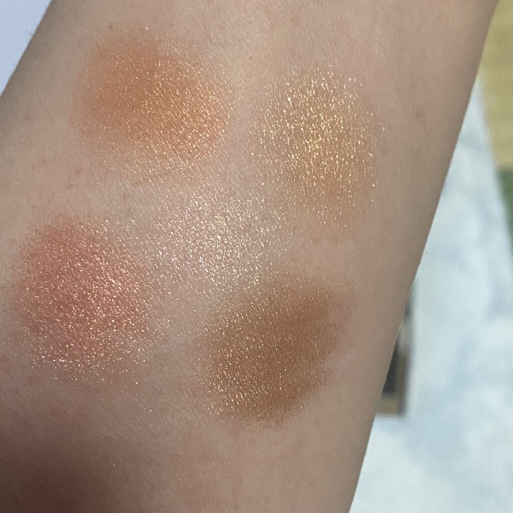 まず、真ん中の列。。。チークとしては濃すぎて使えません。なのでアイシャドウとして使ってますがピンクのアイシャドウが苦手な私は2回位しか使ってない🥺 いい点はハイライトがとにかく綺麗💓上も下も好き✧︎✧︎✧︎ チークの上にハイライトを重ねて使える。 これやるとチークもツヤンツヤンで綺麗に見えます。