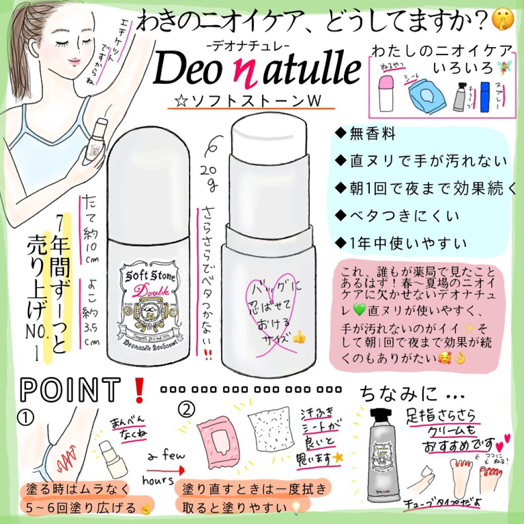 \汗をかく夏には必須!/【薬用デオナチュレソフトストーンW】汗とニオイのケアに、特に夏にはこの商品以外使えない必須アイテム✨ロールオンタイプやスプレータイプの商品が沢山ありますが、脇の脱毛後や汗疹が出来た時に滲みて痛くてツライ。その点、こちら...