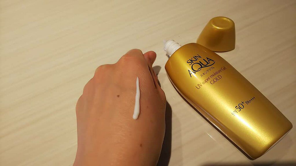 スキンアクア スーパーモイスチャージェルゴールド(販売名:スキンアクア スーパーモイスチャージェルS)SPF50+、PA++++内容量:110g無香料、無着色、鉱物油フリースーパーウォータープルーフなのに石鹸でオフできます😉顔・からだ用で、化...