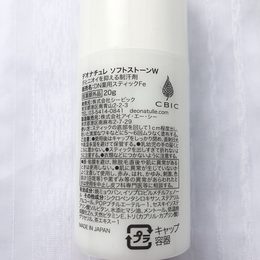 - \11年間ず~っと売上No.1*制汗デオドラント/ ワキの汗・ニオイを元から防ぐ 直ヌリスティック・無香料・アルコールフリー 天然アルム石に着目。有効成分「焼ミョウバン」を配合。 ◆◆ユーザーから選ばれる理由◆◆ ◆『天然アルム石のチカラ』に着目して、汗・ニオイを元から防ぐ! 「デオナチュレ ソフトストーンW」は、天然アルム石に着目。有効成分「焼ミョウバン」を配合し、汗・ニオイを元から防ぎます。 ◆ニオイの発生源・ワキに“直ヌリ”でしっかり密着し、朝ぬって夜まで続いちゃう! 忙しい朝でもサッとつけることができるスティックタイプで、夜まで長時間持続。 ◆すぐにサラサラ!ベタつき・白残りしにくい すぐに洋服を着ることができるので、時間のない朝にも嬉しい! ==注意== ●顔・粘膜を避け、除脱毛直後や肌に異常があるときは使用しないでください。●肌に異常が生じていないかよく注意してご使用ください。また、お肌に合わないとき、使用中に赤み、はれ、かゆみ、刺激、色抜け(白班等)や黒ずみ等の異常があらわれたときは、使用を中止し、皮フ科専門医などにご相談ください。●使用後はキャップをしっかり閉め、直射日光や高温多湿を避けて保管してください。●乳幼児の手の届かないところに置いてください。●スティックを出し過ぎて折れないようご注意ください。●衣類などにつかないようご注意ください。●本製品は残り少なくなりますと、構造上容器の底に中身が若干残ります。そのため、実際には容器に表記されております容量以上を充填しております。 販売名:DN薬用スティックFe *インテージSRI+制汗剤市場 2013年5月~2024年4月 ソフトストーンW(販売名:デオナチュレソフトストーンEX(リニューアル前処方)・DN薬用スティックFe)累計販売金額