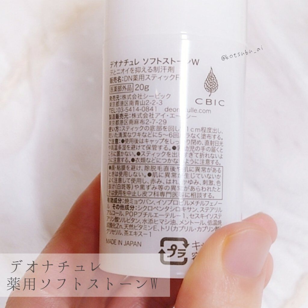 - \11年間ず~っと売上No.1*制汗デオドラント/ ワキの汗・ニオイを元から防ぐ 直ヌリスティック・無香料・アルコールフリー 天然アルム石に着目。有効成分「焼ミョウバン」を配合。 ◆◆ユーザーから選ばれる理由◆◆ ◆『天然アルム石のチカラ』に着目して、汗・ニオイを元から防ぐ! 「デオナチュレ ソフトストーンW」は、天然アルム石に着目。有効成分「焼ミョウバン」を配合し、汗・ニオイを元から防ぎます。 ◆ニオイの発生源・ワキに“直ヌリ”でしっかり密着し、朝ぬって夜まで続いちゃう! 忙しい朝でもサッとつけることができるスティックタイプで、夜まで長時間持続。 ◆すぐにサラサラ!ベタつき・白残りしにくい すぐに洋服を着ることができるので、時間のない朝にも嬉しい! ==注意== ●顔・粘膜を避け、除脱毛直後や肌に異常があるときは使用しないでください。●肌に異常が生じていないかよく注意してご使用ください。また、お肌に合わないとき、使用中に赤み、はれ、かゆみ、刺激、色抜け(白班等)や黒ずみ等の異常があらわれたときは、使用を中止し、皮フ科専門医などにご相談ください。●使用後はキャップをしっかり閉め、直射日光や高温多湿を避けて保管してください。●乳幼児の手の届かないところに置いてください。●スティックを出し過ぎて折れないようご注意ください。●衣類などにつかないようご注意ください。●本製品は残り少なくなりますと、構造上容器の底に中身が若干残ります。そのため、実際には容器に表記されております容量以上を充填しております。 販売名:DN薬用スティックFe *インテージSRI+制汗剤市場 2013年5月~2024年4月 ソフトストーンW(販売名:デオナチュレソフトストーンEX(リニューアル前処方)・DN薬用スティックFe)累計販売金額