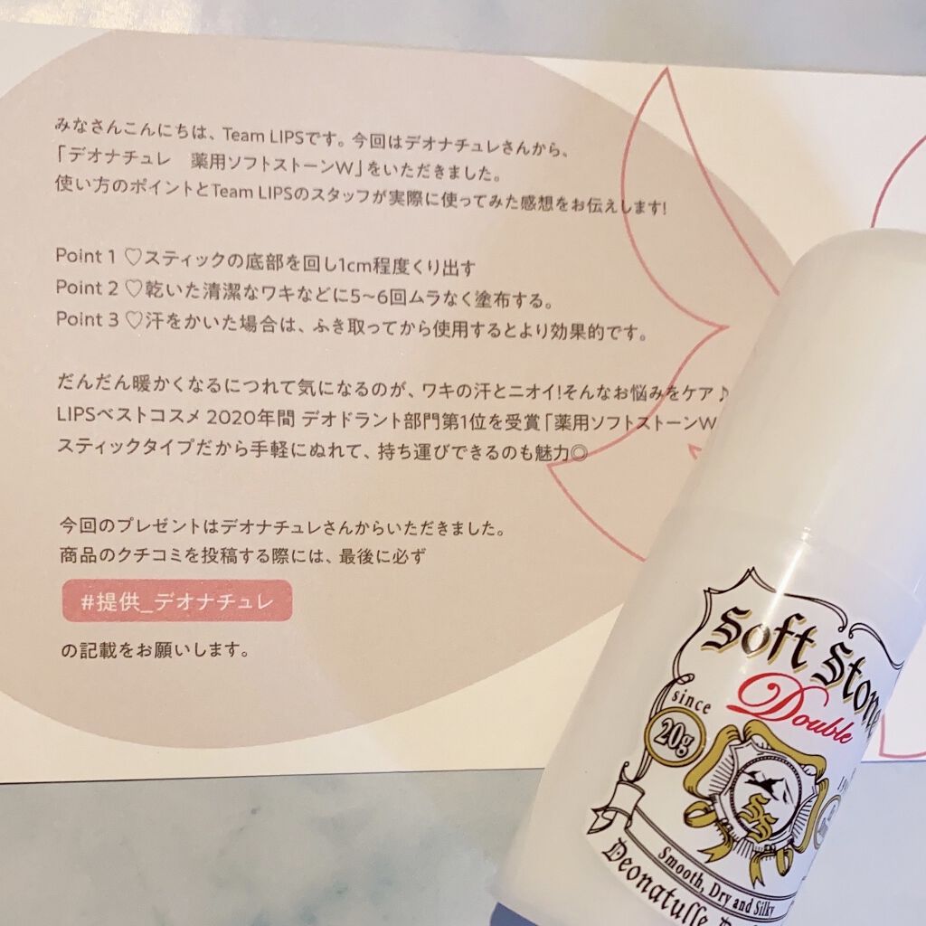 【使用レビュー】【当選品】◯デオナチュレ ソフトストーンW (公式オンラインショップ 参考価格税込 990円)LIPS様のプレゼント応募に当選し、デオナチュレ ソフトストーンW、さらさらクリーム、足指さらさらクリームを太っ腹3点いただきました...
