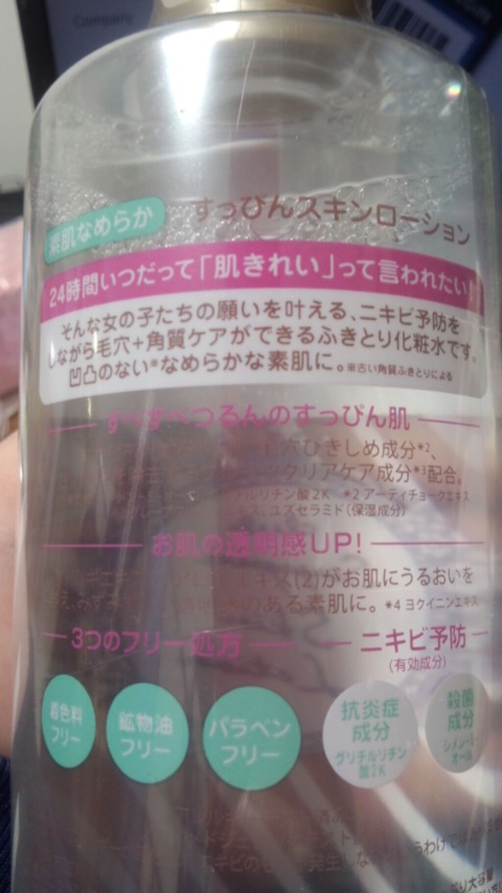 - 【アクネケア】 シメン-5-オール,グリチルリチン酸2K,水,エタノール,BG,濃グリセリン,POE水添ヒマシ油,フェノキシエタノール,クエン酸Na,香料,クエン酸,混合植物抽出液(34),ヨクイニンエキス,グレープフルーツエキス,アロエエキス(2),アーティチョークエキス,ユズセラミド 【ナチュラル】 水,グリセリン,BG,ベタイン,レブリン酸Na,アニス酸Na,クエン酸,キサンタンガム,カプロイルプロリンNa,ラウリン酸ポリグリセリル-10,クエン酸Na,ヒアルロン酸Na,カミツレ花エキス,ダマスクバラ花エキス,ラベンダー花エキス,オウゴン根エキス,ローズマリー葉エキス,水溶性コラーゲン,ビルベリー葉エキス 【ミルキー】 水,グリセリン,BG,トリエチルヘキサノイン,ソルビトール,イソステアリン酸PEG-20ソルビタン,PEG-9ジメチコン,(アクリレーツ/アクリル酸アルキル(C10-30))クロスポリマー,レブリン酸Na,アニス酸Na,キサンタンガム,水酸化K,カプロイルプロリンNa,EDTA-2Na,乳酸桿菌/ブドウ果汁発酵液,乳酸桿菌/乳発酵液(牛乳),アルギニン,フィチン酸,アルニカ花エキス,アスコルビルグルコシド,ラウロイルラクチレートNa,シクロヘキサン-1,4-ジカルボン酸ビスエトキシジグリコール,酸化銀,セラミドNP,セラミドAP,フィトスフィンゴシン,コレステロール,カルボマー,セラミドEOP