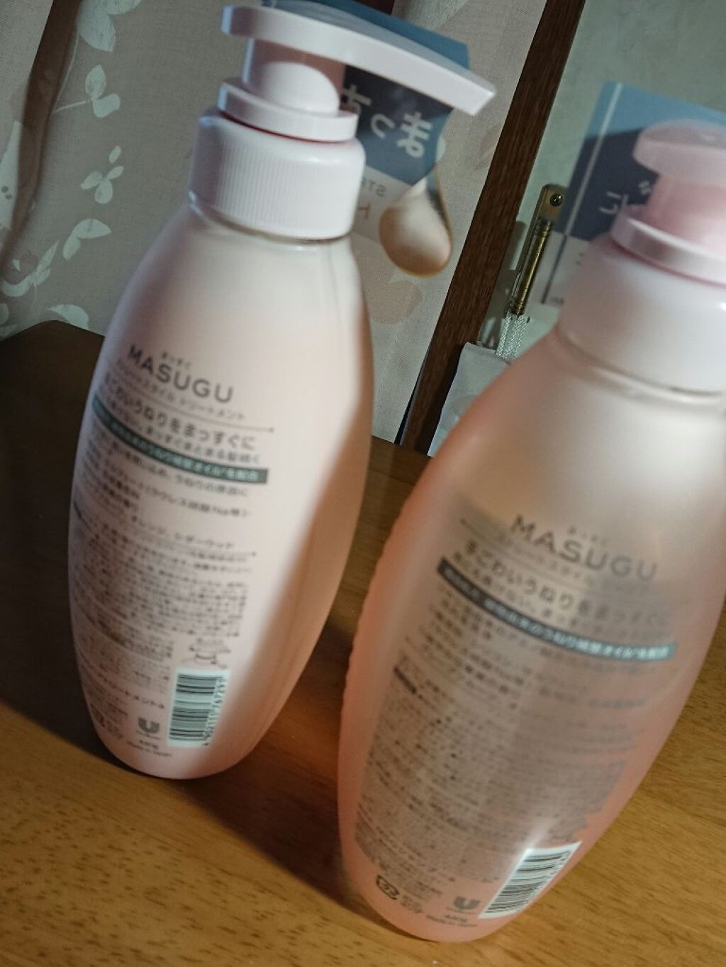 MASUGU様のくせ毛やうねり髪に悩んでいる人に向けたシャンプー、トリートメント、ヘアマスク、ヘアオイル使用してみました😊香りが甘め✨泡立ちも良く乾かした後もくせ毛なのですがまとまりが良かったです✨ヘアオイルは重めのテクスチャー。ヘアセットで...