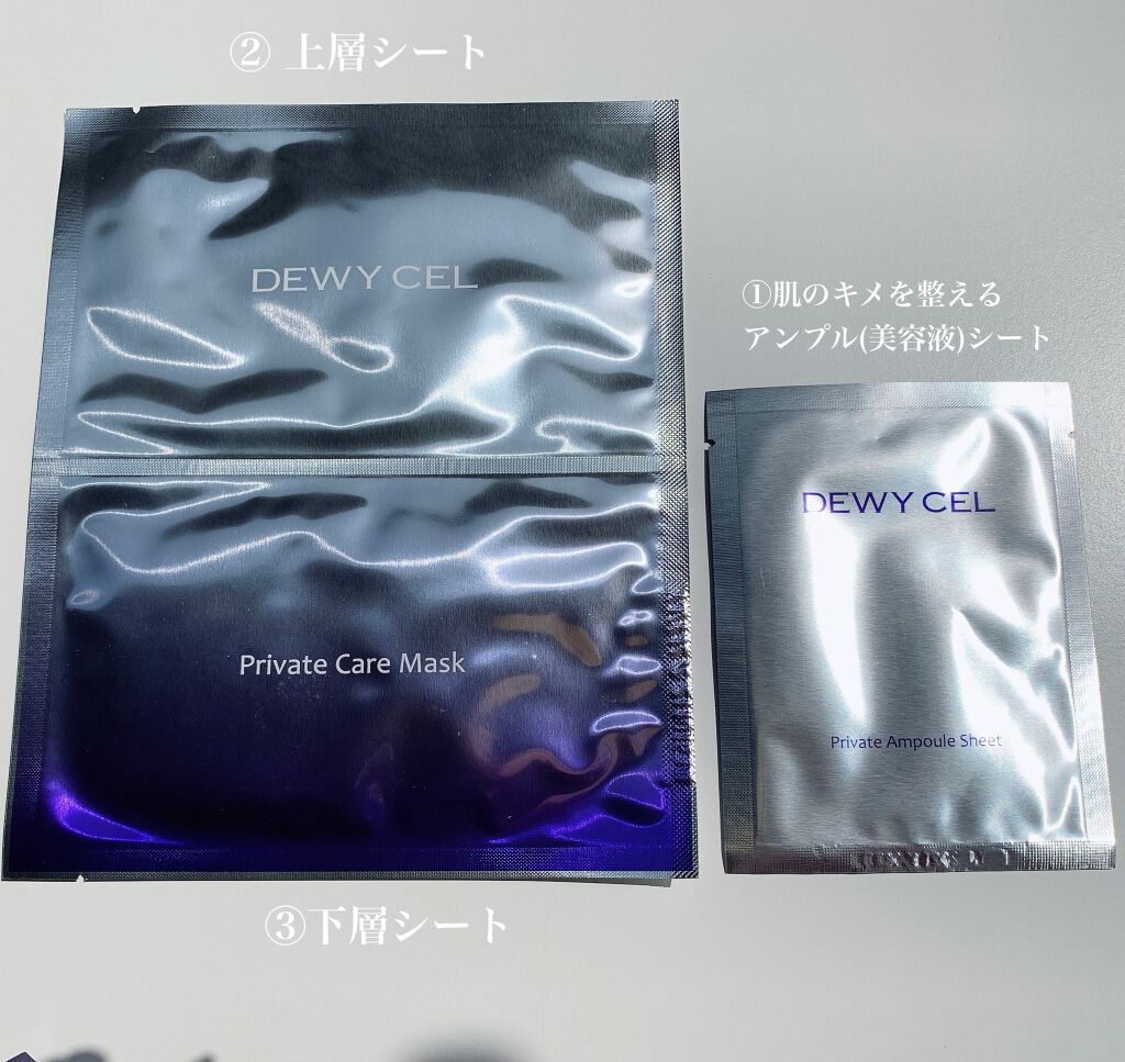 #PRDEWYCELさまからいただきましたデュイセルプライベートケアマスク\1週間に1度のご褒美ケアマスク/アンプルシート、パック(上層&下層)の3STEPのタイプ✨️・アンプルシートしっかりした厚みのあるシートでふき取りやすい凹凸面は優しい...