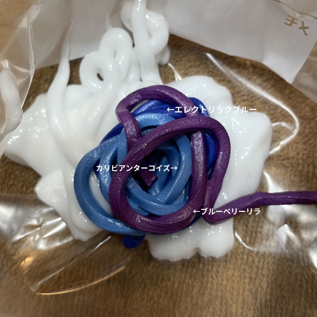 #got2b#カラークリーム#レインボーアクア_【中身】 ・エレクトリックブルー ・カリビアンターコイズ ・ブルーベリーリラ の、3色入りで約1,600円ってコスパ◎ ・トリートメント×2袋_【色もち】 ピカイチ! 2回目のシャンプーからは泡...