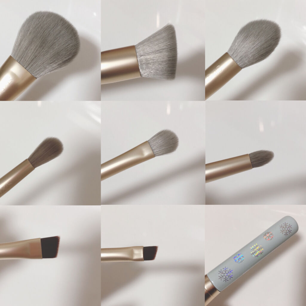 - 色とりどりの雪の花が時を刻む「Fairytale」シリーズのメイクブラシセット。模様がキラキラで角度によって色味が変わるのがとても可愛い。 高品質な木製取手は、質感が良く、握りやすい特徴がございます。毛先が広がらないネット収納やブルーのオーガンジー素材の巾着もついてくるので可愛く持ち運びできとても便利でした!いつでもお手軽にメイク直しができます。